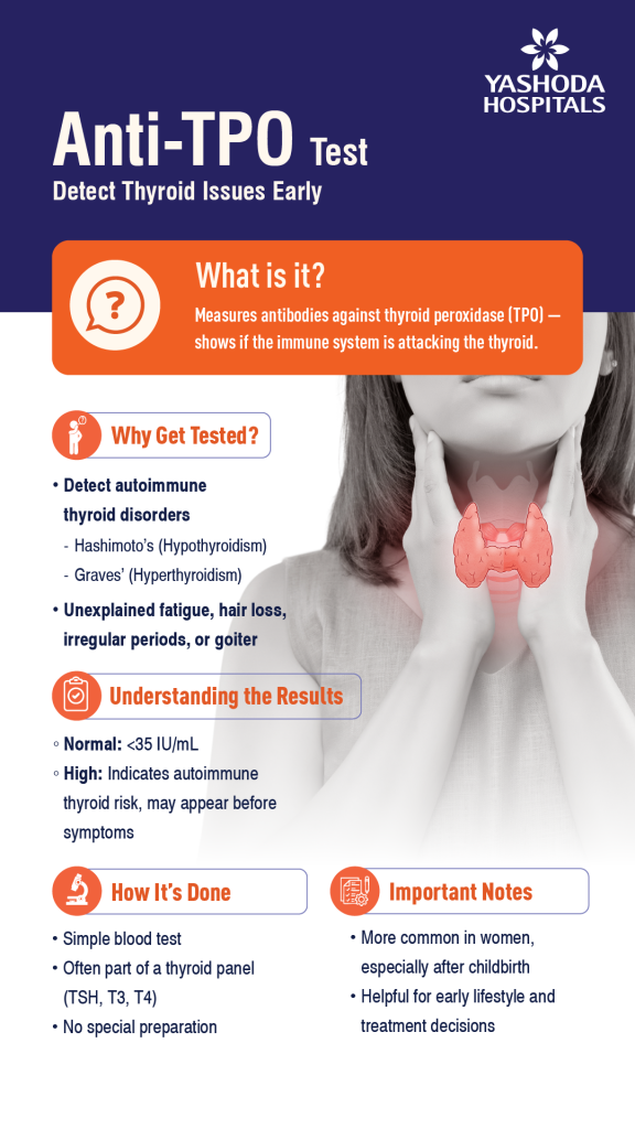 The anti-TPO test is used to diagnose autoimmune diseases of the thyroid. Antibodies are proteins produced by the immune system to fight foreign substances such as bacteria or viruses. When the antibodies start attacking the body’s thyroid tissues, you develop an autoimmune disorder of the thyroid. This can lead to the development of symptoms such as redness, swelling, and health complications if left untreated.