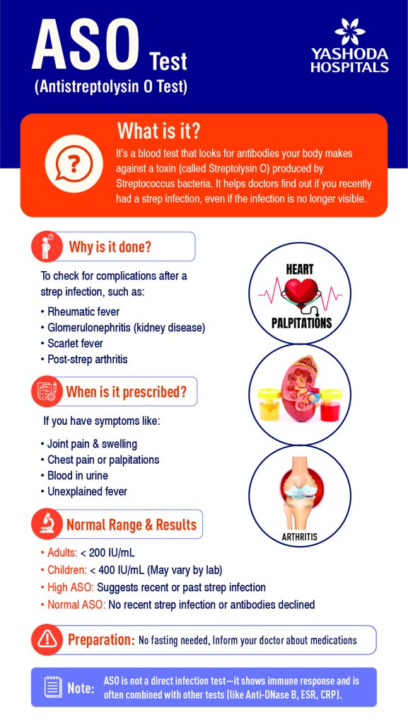 If your ASO test results are higher than the normal range, it suggests that you had a recent streptococcal infection. On the other hand, if your ASO test results are within the normal range but you still exhibit symptoms of a post-streptococcal complication, your doctor may recommend repeating the test to avoid missing any potential complications.